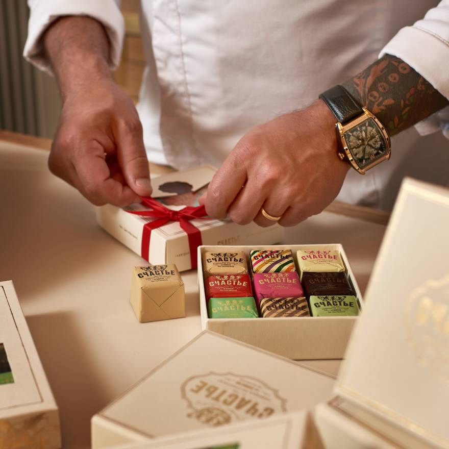 Конфеты Счастья так полюбились гостям, что за ними приходили специально, особенно в преддверии праздников и, именно это послужило импульсом для создания Шоколадной Фабрики СЧАСТЬЕ и ее уютных магазинов в Петербурге, Москве и Париже.